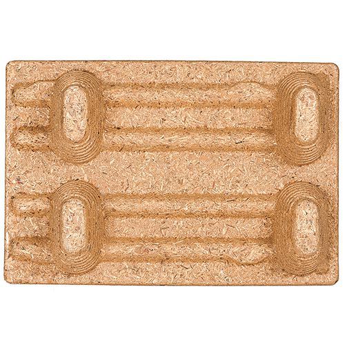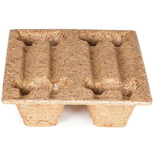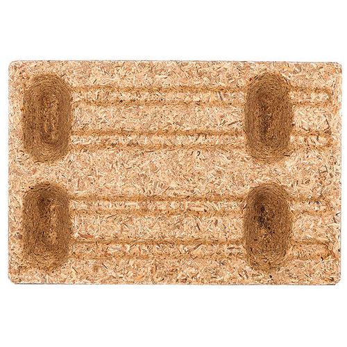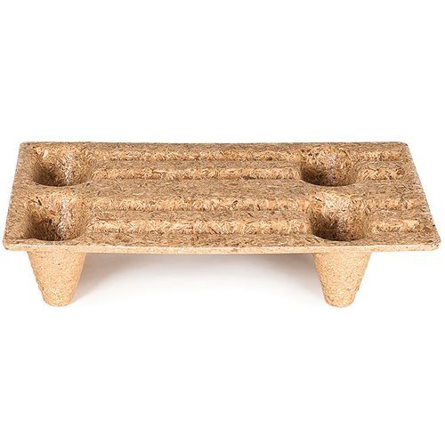 Stapelbare Palette für optimale Raumnutzung. Leichtes und sehr beständiges Holzfasermaterial. Öffnungen für einfaches Einfahren der Flurförderer.