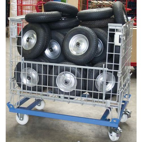 - Palettenrollwagen aus Stahl mit maschinengeschweißten Ecken, ermöglicht eine Führung und gute Stabilisierung der Last.