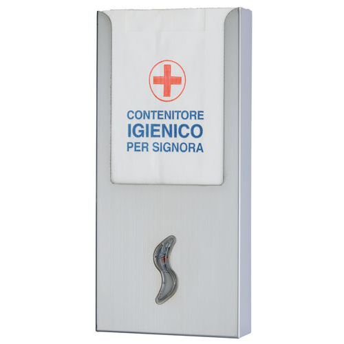 | Produktname | Papierbeutelspender für Damenhygiene, gebürsteter Edelstahl, Farbe: Silber, Höhe: 280 mm, Breite: 130 mm |