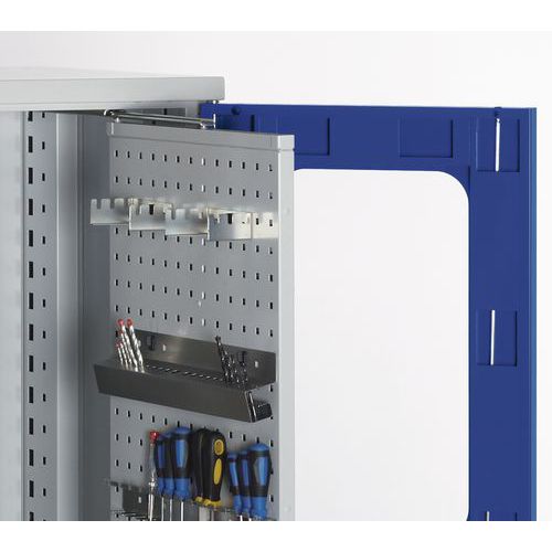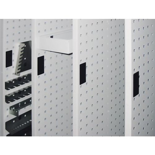Mit vollkommen ausziehbaren Lochplatten für Werkzeuge.