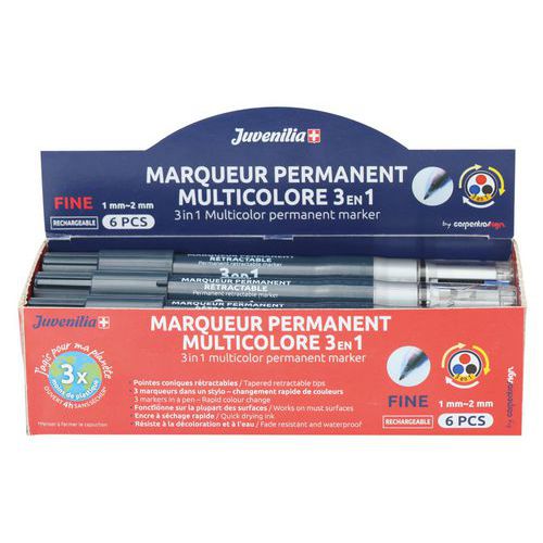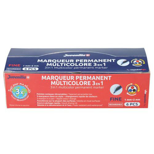| Produktname | Permanentmarker, 3 Farben, nachfüllbar - Juvenilia, Tinte Farbe: Gemischt, Rahmen Material: PVC |