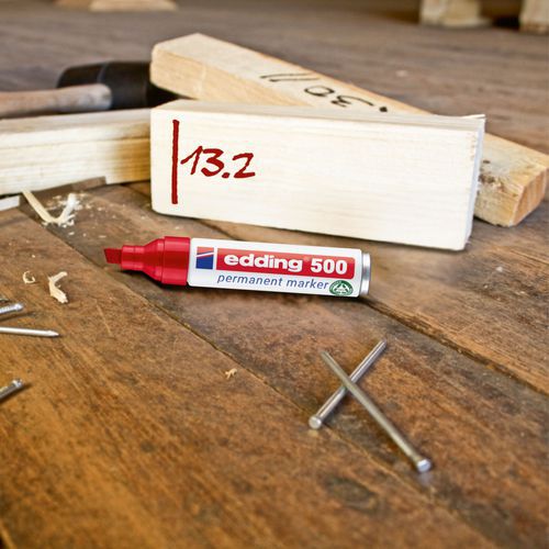 Permanentmarker Edding 500 - Abgeschrägte Spitze, Tinte Farbe: Rot, Spitzeform: Fase, Linienstärke: 2-7 mm Permanentmarker Edding 500 - Abgeschrägte Spitze, Tinte Farbe: Rot, Spitzeform: Fase, Linienstärke: 2-7 mm