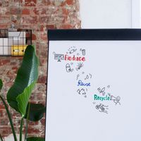 Marker, mindestens 90% des verwendeten Kunststoffs ist recyceltes Material Ideale Spitze zum Schreiben auf Flipchart-Blöcken. Möglichkeit des Aufsteckens der Verschlusskappe auf das Ende des Markers, damit er nicht verloren geht. Dank Cap-Off-Technologie trocknet der Marker auch nach mehreren Wochen ohne Verschlusskappe nicht aus. Praktischer Clip: damit der Marker nicht wegrollt und an Kleidungsstücke oder Gegenstände geklemmt werden kann. Appositamente progettato per scrivere e segnare su carta da cavalletto