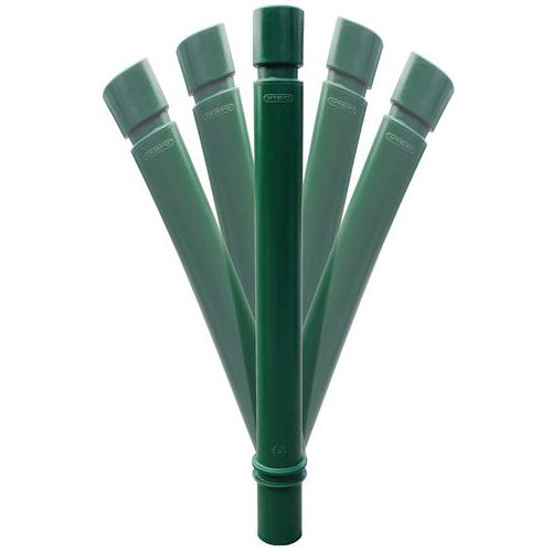 Pfosten mit Formgedächtnis und sehr hoher Flexibilität. Verformt sich bei einem Stoß und nimmt sofort die ursprüngliche Form wieder ein. Besonders widerstandsfähig gegenüber Reißen, Zugkraft und Bruch. Schnelle und einfache Installation des Pfostens.