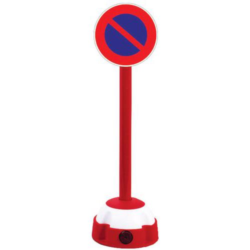 Enthält: - Pfosten auf Sockel - Pfosten (zum Beschweren mit Sand oder Kies, bis 13 kg) - Signalscheibe