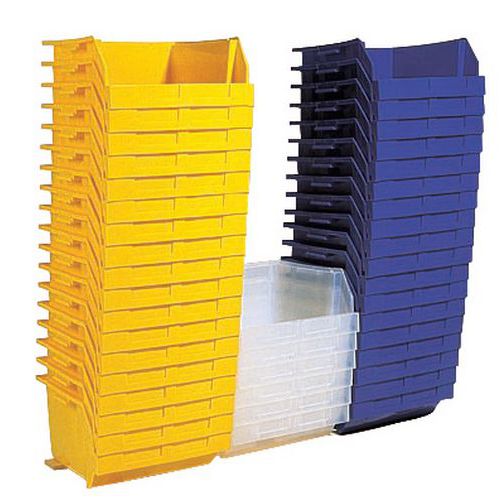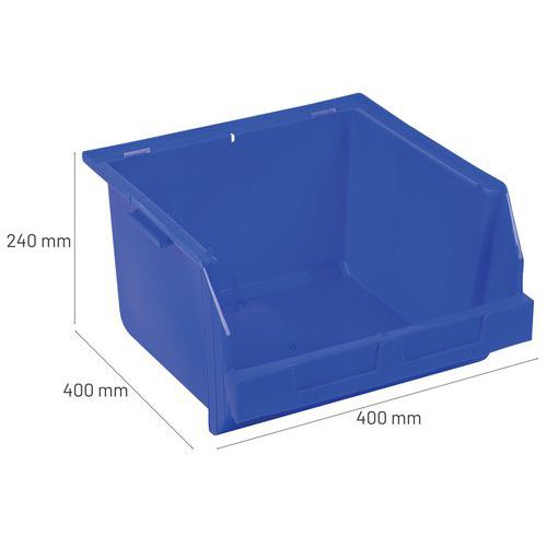 Hohe Belastungsfestigkeit. Picking-Ablagebox, mit anderen Behältern desselben Modells stapelbar und aufeinandersetzbar. Mit seitlichem Griff. Mit anderen Behältern durch seitlichen Griff zusammenzusetzen. Einfaches zu erkennen durch doppelten Etikettenhalter. Kundengarantie : 3 Jahre Max. Belastung (kg) : 200