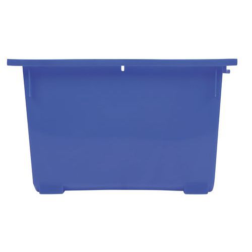 Hohe Belastungsfestigkeit. Picking-Ablagebox, mit anderen Behältern desselben Modells stapelbar und aufeinandersetzbar. Mit seitlichem Griff. Mit anderen Behältern durch seitlichen Griff zusammenzusetzen. Einfaches zu erkennen durch doppelten Etikettenhalter.