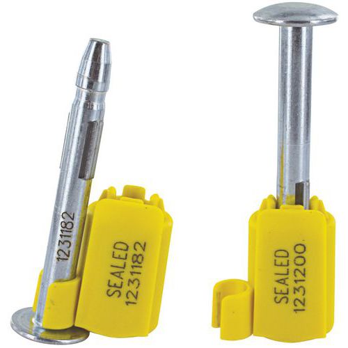 | Produktname | Plombe mit doppelter Nummerierung für Container, Farbe: Gelb, Gesamtlänge: 79 mm, Stift Ø: 8 mm |
