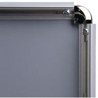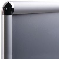 Widerstandsfähiger Posterrahmen aus Aluminium. Einfach in der Anwendung: Zum Einschieben des Posters lässt sich der Posterrahmen leicht mit den 4 Profilkanten des Aluminiumrahmens öffnen und schließen. Das Poster selbst ist geschützt und dennoch leicht zugänglich. Abgerundete Ecken für mehr Sicherheit.