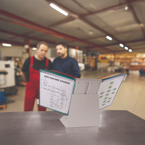 Mit diesem Ständer haben Sie Ihre wichtigen Dokumente schnell zur Hand. Tischständer zur staubgeschützten Aufbewahrung Ihrer Unterlagen. Besonders geeignet für die Industrie.