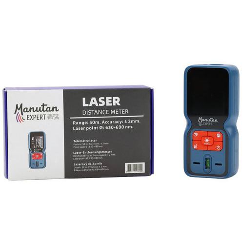 | Produktname | Professioneller Laser-Entfernungsmesser, 50 m - Manutan Expert, Spannweite: 50 m, Batterie geliefert: nein |
