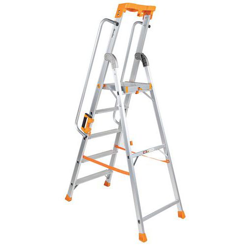 Profitrittleiter aus Aluminium mit Rampe, Arbeitshöhe: 3.14 m, Plattformhöhe: 1.136 m Profitrittleiter aus Aluminium mit Rampe, Arbeitshöhe: 3.14 m, Plattformhöhe: 1.136 m