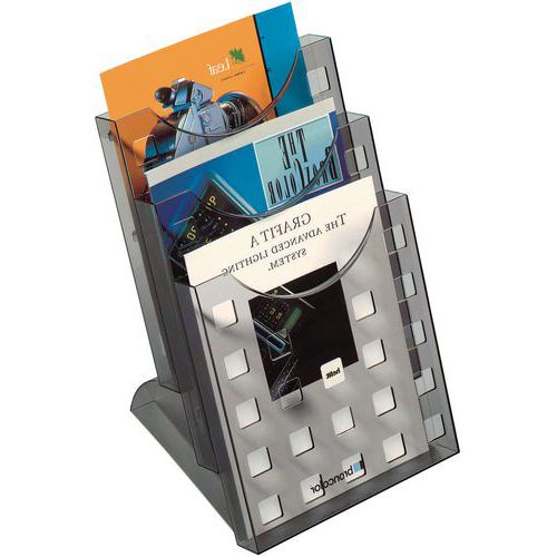 | Produktname | Prospekthalter Helit A4, 3 Fächer, Werkstoff: Kunststoff, Für Format: A4, Farbe: Grau, Gesamthöhe: 28.8 cm |