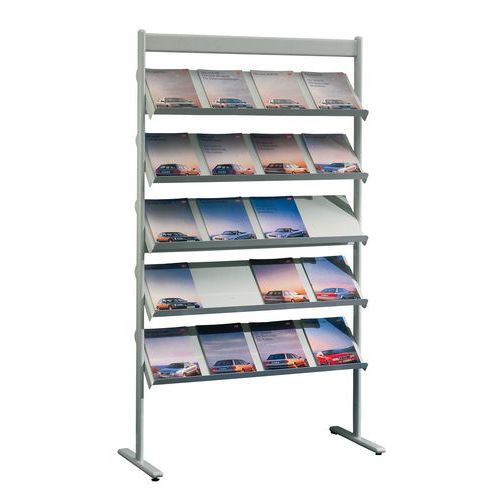 | Produktname | Prospektregal 3175, Anzahl Fächer/Abteil: 5, Für Format: A4, Farbe: Grau, Höhe: 170 cm, Breite: 93 cm |