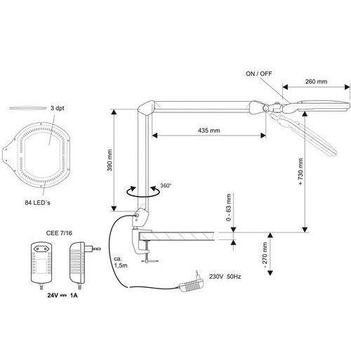 | Produktname | Rechteckige LED-Lupenlampe 1250 lm - Vergrößerung 1,75-fach - Maul, Lichtstrom: 1250 lm |