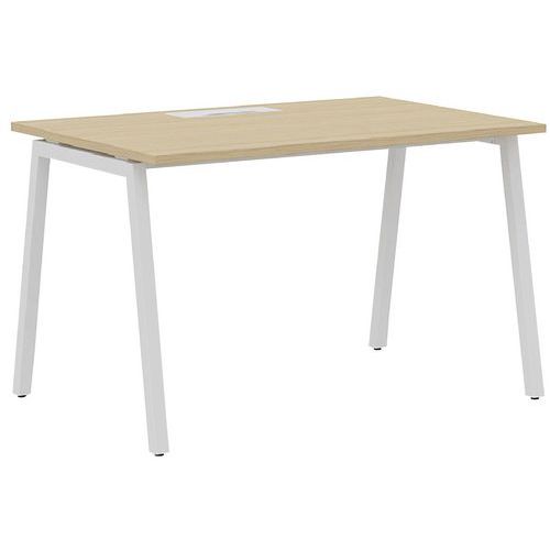 - Gerader Schreibtisch mit trapezförmigen Füßen (A-Füßen).