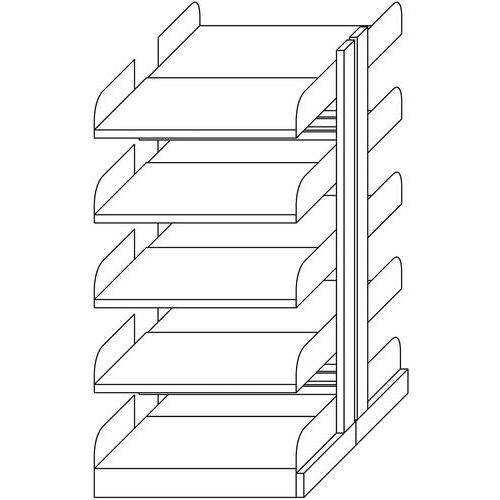 Büroregal mit einfachem oder doppeltem Zugang. Robustes Material und stabile Konstruktion. Einzigartiges und zuverlässiges Einhaksystem. Hochwertige Verarbeitung mit widerstandsfähiger Beschichtung gegen Kratzer. Einfach aufzubauendes und erweiterbares Ausstellungsregal.