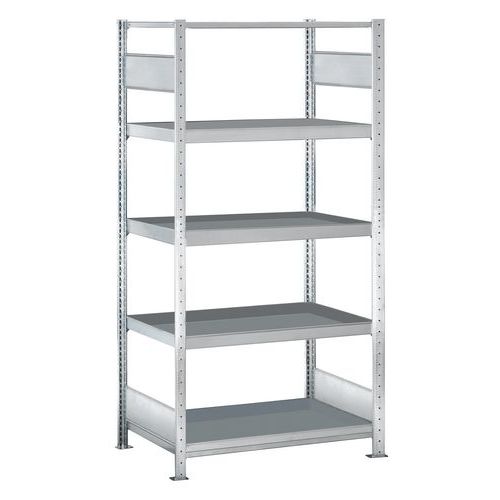 Das Regal Easy-Fix aus verzinktem Stahl bietet hohen Schutz gegen Korrosion, Feuchtigkeit und Stöße Auf den durchgehenden Stahlfachböden können Waren in vielen unterschiedlichen Größen gelagert werden Einfach und schnell durch Ineinanderstecken aufzubauendes Industrieregal, kein spezielles Werkzeug erforderlich Dank seiner modularen Bauweise können Sie zusätzliche Regalböden oder Anbauregale hinzufügen