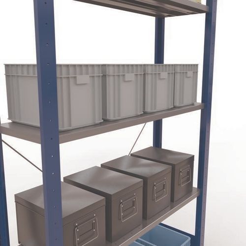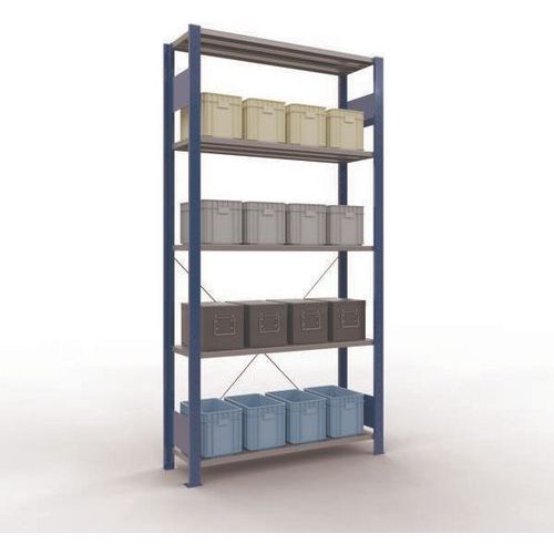 Robustes komplettes Regalsystem mit edler Epoxid-Beschichtung in grau oder blau. Auf den durchgehenden Stahlfachböden können Waren in vielen unterschiedlichen Größen gelagert werden. Einfach und schnell durch Ineinanderstecken aufzubauendes Industrieregal, kein spezielles Werkzeug erforderlich. Einfach erweiterbar mit einem oder mehreren Anbauelementen.