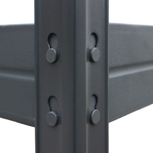 Industrieregal zur Lagerung leichter bis mittelschwerer Lasten, mit 250 kg/Ebene Robust: sichere Befestigung der Streben mit Doppelnietung, 2 Verstärkungen pro Ebene unter den Böden In verschiedenen Größen und 3 hochwertigen Ausführungen (Epoxid-Beschichtung oder verzinkter Stahl) erhältlich. Bei Montage modulierbares Regal: 1 hoher Träger oder 2 niedrige Träger nebeneinander. Colori RAL: blu 5010, antracite 7016. Piano in truciolare HDF ad altissima densità. Scaffale da magazzino molto facile da montare, non richiede strumenti specifici.