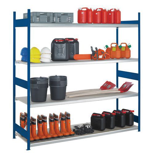 - Solides Lagerregal aus Stahl mit sehr breiten Fächern