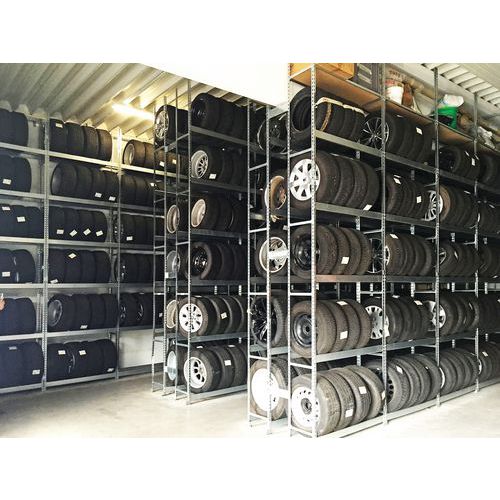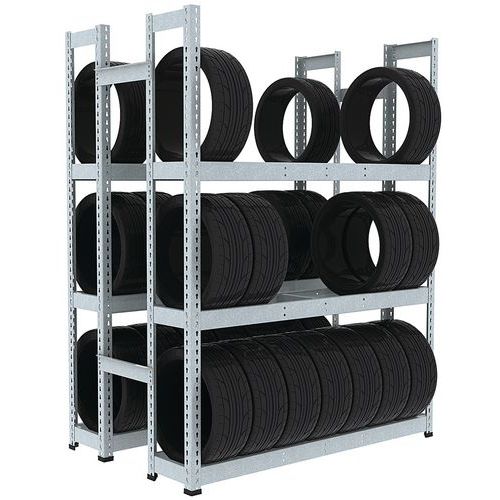 - Robustes Regal für Reifen aus Metall, ein- und doppelseitig.