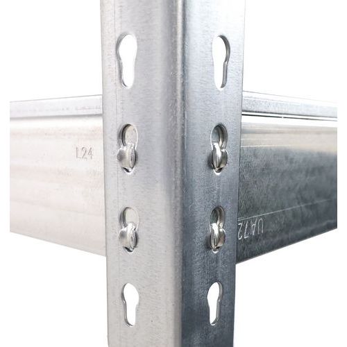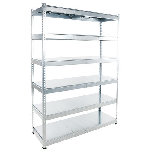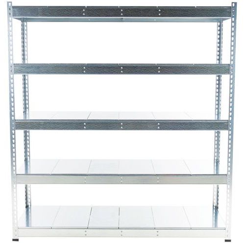 Schlichtes und extrem robustes Industrieregal zur Aufbewahrung schwerer Waren. Geschlossener Fachboden aus Stahl: perfekt für die Lagerung loser und/oder fettiger Produkte geeignet. Verzinkt für feuchte Umgebungen oder mit grauer/blauer Epoxid-Beschichtung für trockene Umgebungen. Lagerregal für einfache Montage, keine Hilfe durch Techniker oder spezifisches Werkzeug nötig.