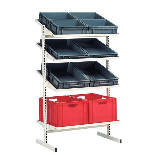- Einfaches Behälterregal, ideal um es gegen eine Wand zu stellen.