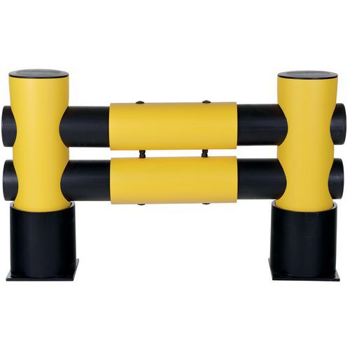 Regalschutzbarriere speziell entwickelt, um Stöße durch Kollisionen mit Fördergeräten abzufangen. Korrosionsfreies Material für den Einsatz im Außen- und Innenbereich. Für Außen- und Innenbereich geeignet. Beständig gegen UV-Strahlen und chemische Produkte gemäß high-ISO/TR 10358. TÜV-Zertifikat.