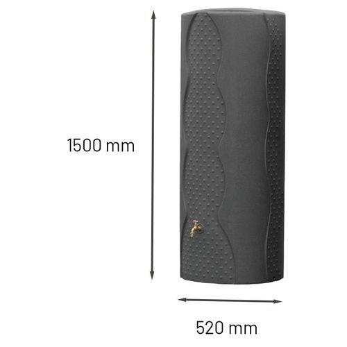 Regenwasserauffangbehälter, zu 100% aus hochdichtem Polyethylen, 300 L Fassungsvermögen, einfache Installation und Handhabung Durchgefärbt und UV-behandelt, keine Algenbildung Zylinderform nimmt wenig Platz am Boden ein, zugleich maximales Füllvermögen Eignet sich ideal für Grünflächen, Baustellen, Werkstätten oder Industriegebäude Elegantes Design, das sich optisch gut auf einer Terrasse macht