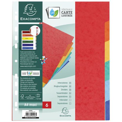 Register mit neutralen Reitern aus Manila-Karton 225 g, Anzahl Trennwände: 6, Farbe: Gemischt