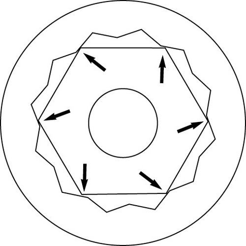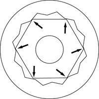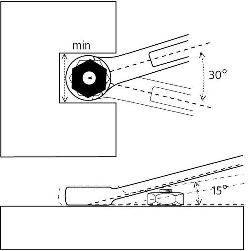 Zwölfkant-Ringkopf mit OGV®-Profil für höhere Leistung und längere Lebensdauer. Ringschlüssel mit Rückschwenkwinkel von 30°. Feiner Kopf für schwer zugängliche Stellen. Il profilo OGV riduce lo stress grazie alle ampie superfici di contatto e all'eliminazione degli angoli vivi nell'utensile. Il trascinamento avviene attraverso le facce del dado: gli angoli non sono più sollecitati, la longevità della chiave aumenta.