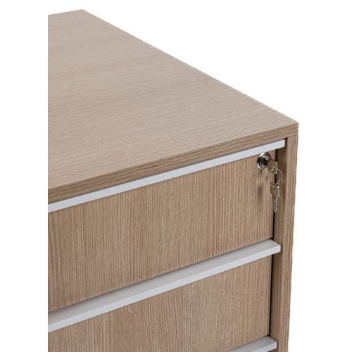 Rollcontainer Misao, melaminbeschichtet, 1-mm-Kanten 3 Schubladen aus melaminbeschichteter Platte Schubladenhöhe 8,6 cm, Breite 50 cm Zentralverriegelung ohne Kippsicherung Griff aus eloxiertem Aluminiumprofil Carico massimo per ogni cassetto di 25kg. Ruote piroettanti diametro 37 mm.