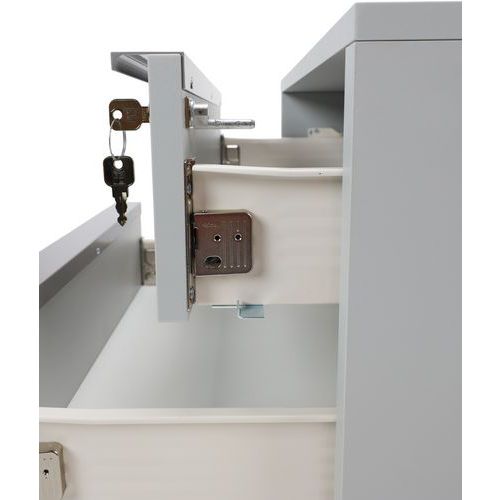Rollcontainer Misao, melaminbeschichtet, 1-mm-Kanten 3 Schubladen aus melaminbeschichteter Platte Schubladenhöhe 8,6 cm, Breite 50 cm Zentralverriegelung ohne Kippsicherung Griff aus eloxiertem Aluminiumprofil Carico massimo per ogni cassetto di 25kg. Ruote piroettanti diametro 37 mm.