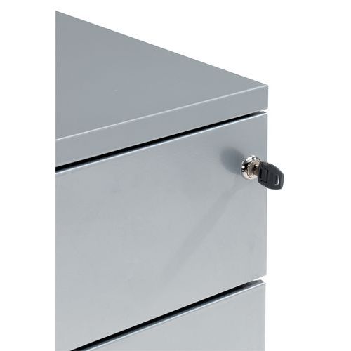 - Die Schubladen sind mit einem Zylinderschloss abschließbar.
