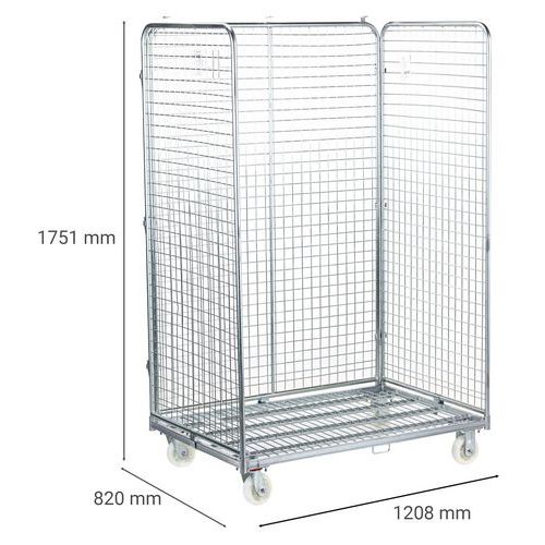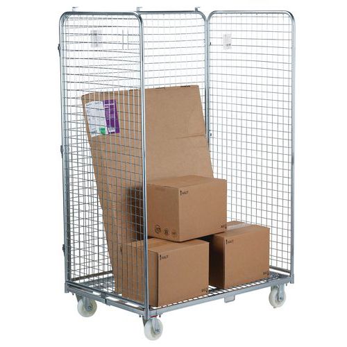 - Rollcontainer Maxi aus Stahl mit 3 Gitterseitenwänden.