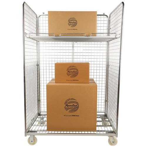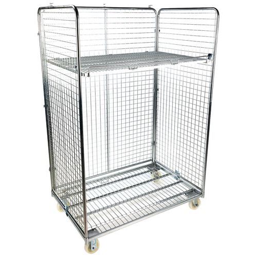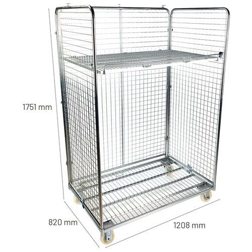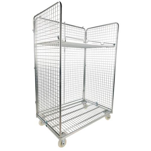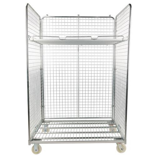 - Rollcontainer Maxi aus Stahl mit 3 Gitterseitenwänden.