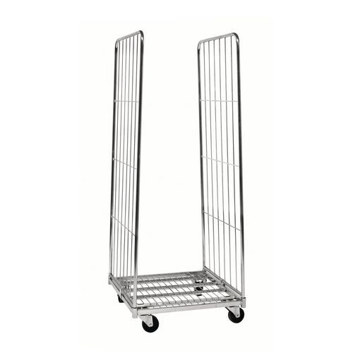 Rollcontainer mit 2 Seiten, ideal für die Beförderung Ihrer Produkte. Robust mit einer Basis aus verzinktem Stahl und Rollen aus Polypropylen.