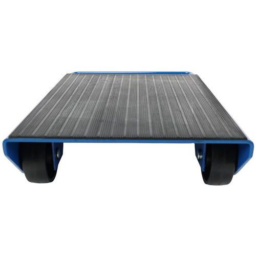 Roller mit 2 Lenkrollen und 2 Bockrollen aus Nylon, Tragkraft von 1000 kg Platte mit den Maßen 310 x 425 mm mit 4 mm dicker PVC-Beschichtung Rolle mit Ø 76 x 45 mm
