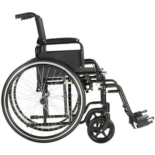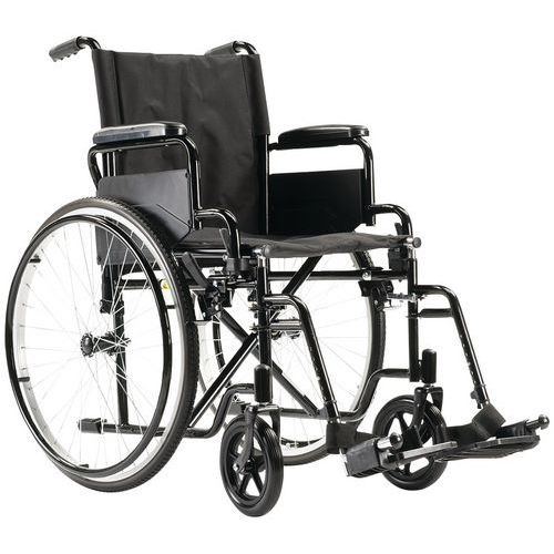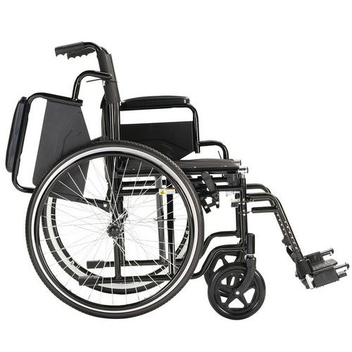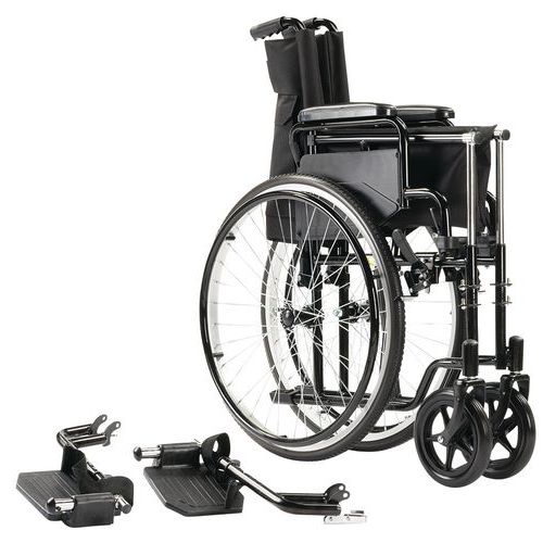 | Produktname | Rollstuhl mit fester Rückenlehne in Schwarz, Sitztiefe: 42 cm, Sitzhöhe: 48 cm, Produktgewicht: 18.5 kg |