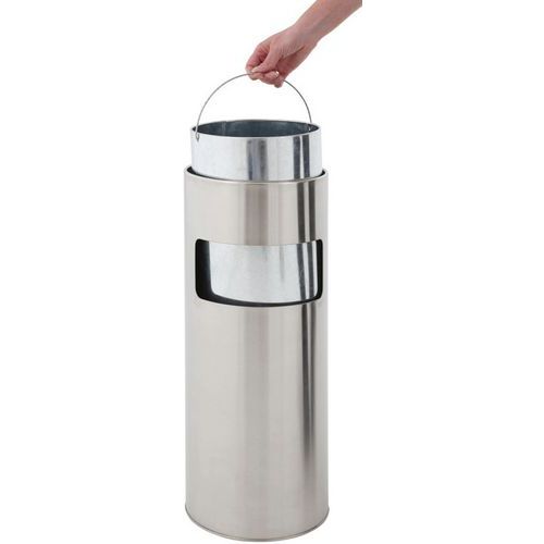 | Produktname | Runder Abfallbehälter mit Aschenbecher - Edelstahl - 12,5 L, Aschenbecher Inhalt: 4 L |