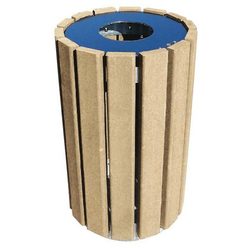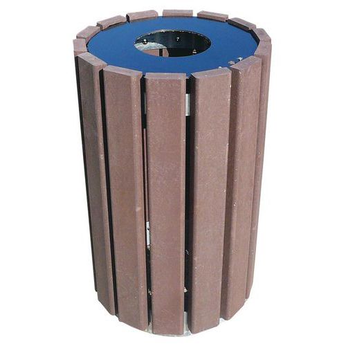 - Runder Abfallbehälter mit Latten aus recyceltem Kunststoff mit einer Dicke von 30 mm.