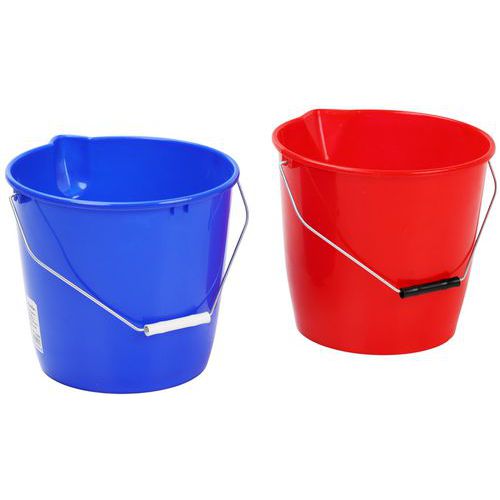 Mit Ausgießer und Metallhenkel, ausgestattet mit Kunststoffgriff, für häufigen Gebrauch Verwenden Sie den blauen Eimer für sauberes Wasser und den roten Eimer für Schmutzwasser.