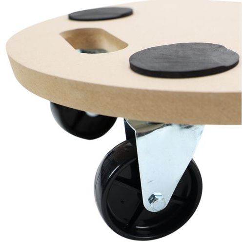 - Rundes Rollbrett mit Holzsockel und 4 Rollen aus Polyamid Mit 4 rutschfesten Gummikufen Integrierter Transportgriff Tragkraft von 200 kg