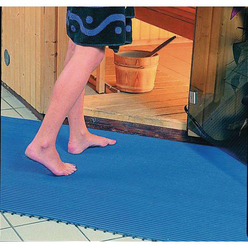 Rutschhemmende Gittermatte per laufendem Meter für Gemeinschaftsbereiche Einwandfreie Hygiene dank porenfreiem Material mit antimikrobiellen und pilzhemmenden Zusätzen Innovatives Design für eine hocheffiziente Wasserableitung Einfaches Zuschneiden, Auslegen und Aufheben der Matte Rutschfeste Oberfläche für hervorragende Stabilität