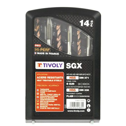 | Produktname | Satz Bohrer+Gewindebohrer HSS Fusio, Stückzahl: 14, Gebrauch: Bohren, Typ Nr.: 11900170030 |