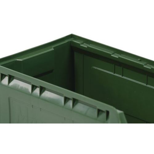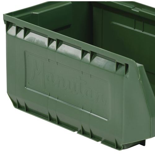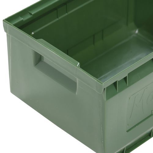 Umlaufender Stapelrand für Stabilität beim Stapeln. Sehr robust dank seitlicher Verstärkungsrippen. Flacher und rutschfester Boden für einfaches Entnehmen. Hervorragende Handhabung durch Griff an der Vorderseite. Sehr stoßfester Kunststoffbehälter. Facile identificazione tramite portaetichetta.