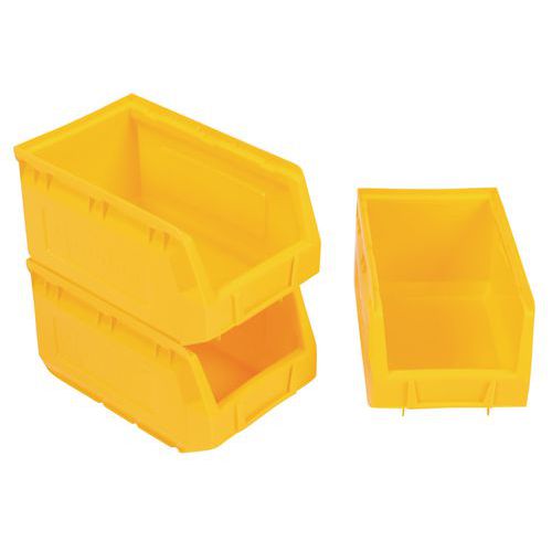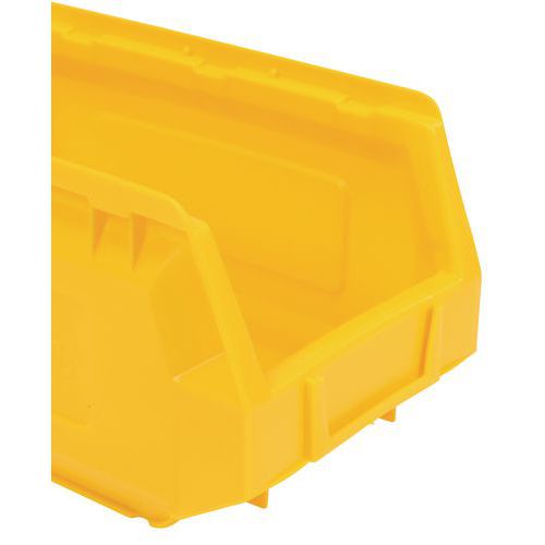 Umlaufender Stapelrand für Stabilität beim Stapeln. Sehr robust dank seitlicher Verstärkungsrippen. Flacher und rutschfester Boden für einfaches Entnehmen. Hervorragende Handhabung durch Griff an der Vorderseite. Sehr stoßfester Kunststoffbehälter. Facile identificazione tramite portaetichetta.