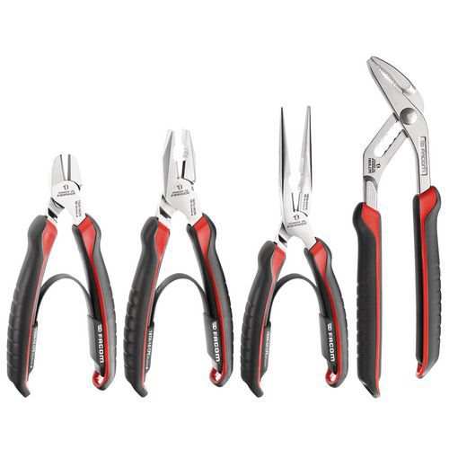 | Produktname | Satz mit 4 Zangen mit ergonomischen Zwei-Komponenten-Griffen - Facom, Stückzahl: 4, Typ Nr.: CPE.A1PB |