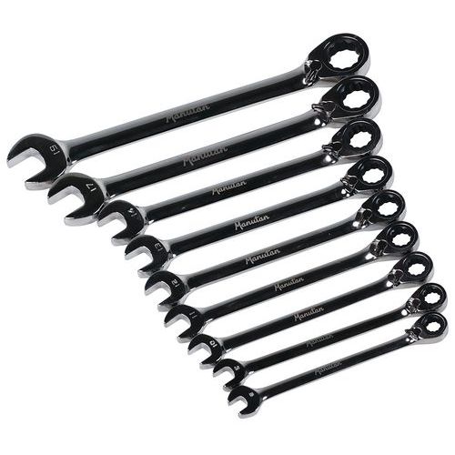 | Produktname | Satz mit 9 Ring-Maulschlüsseln mit Umkehrratsche - Manutan Expert, Anzahl Schlüssel: 9 |